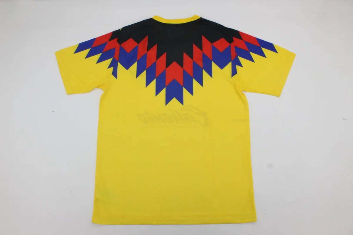 Ce maillot jaune éclatant est sublimé par des motifs noirs, bleus et rouges qui capturent l’essence unique du Club America. Le col rond et les lignes audacieuses confèrent une allure iconique qui rappelle l’époque dorée du football mexicain. Confectionné en polyester respirant, il assure un confort optimal, que ce soit pour jouer ou pour supporter.