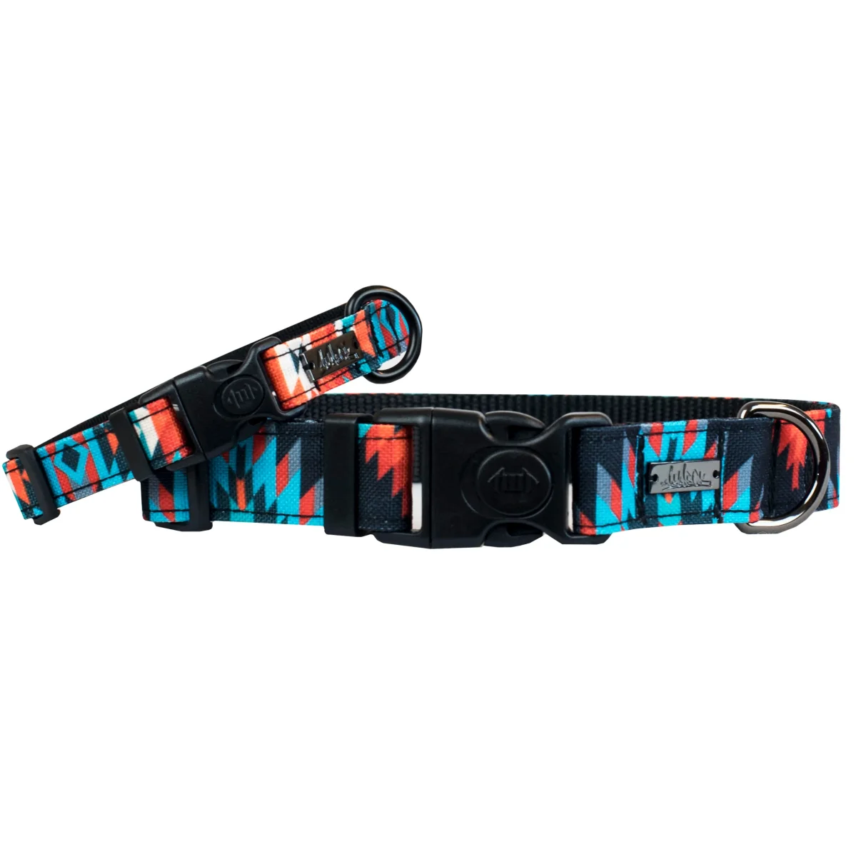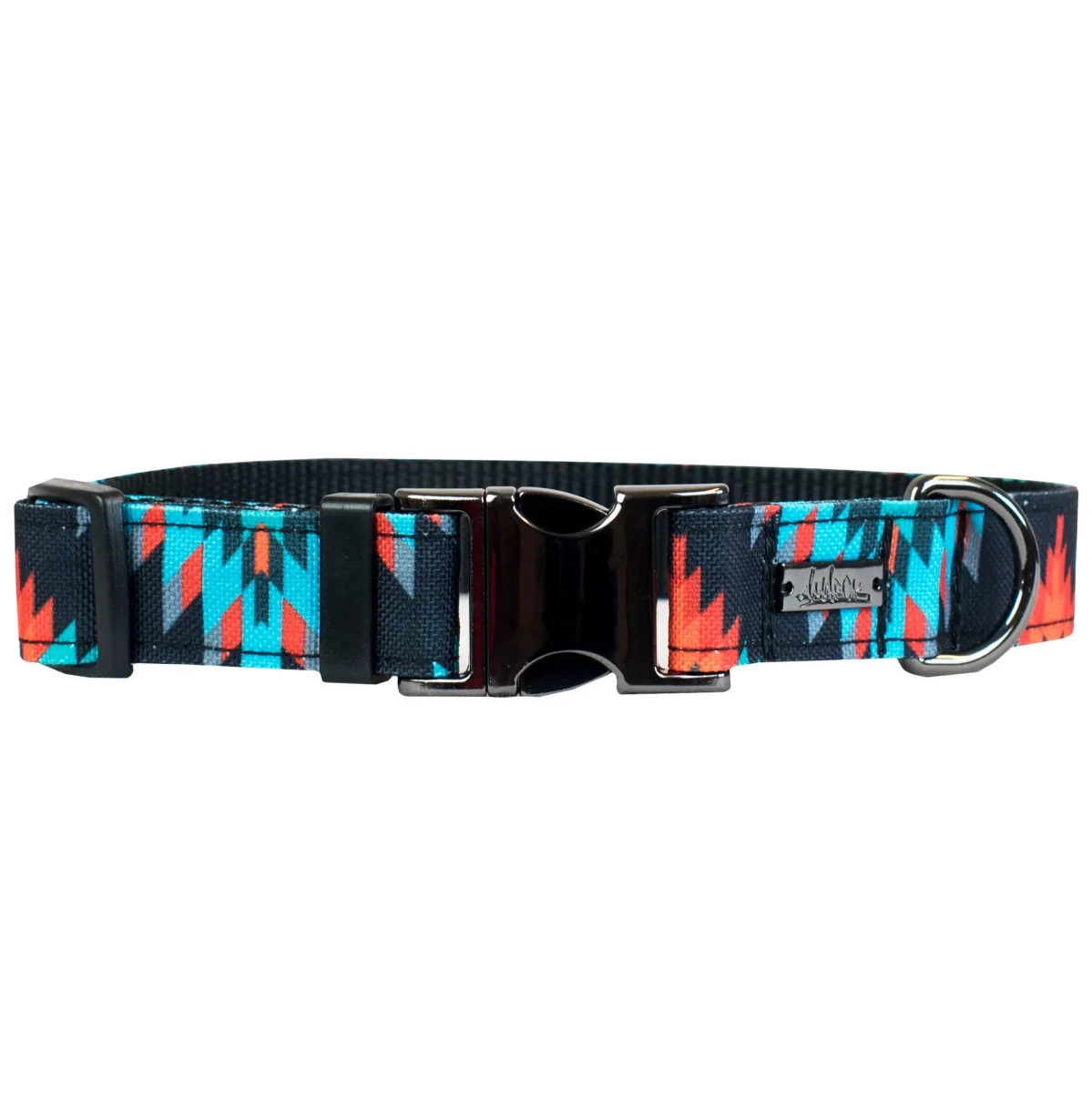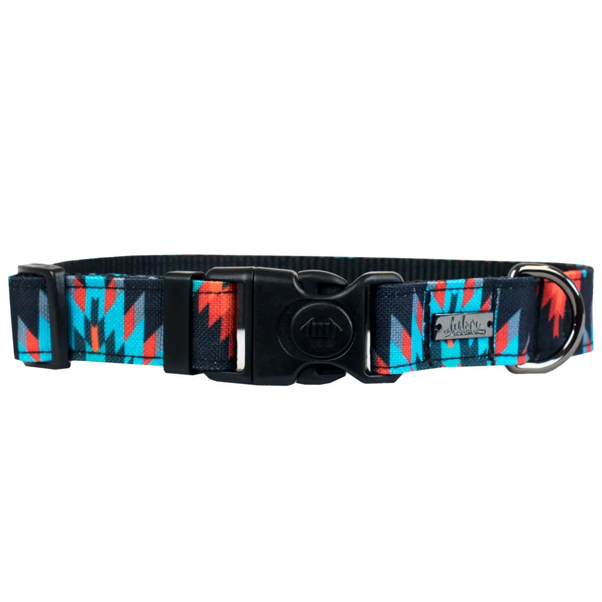 Le Collier NOMADE est souple et résistant, tout en étant des plus confortables pour votre chien. Fait de tissu oxford et de sangle de nylon, ce collier est tout à fait durable et unique. Nos colliers sont munis d’un système de verrouillage intégré à l’avant permet de sécuriser la boucle de fermeture, ce qui le rend très sécuritaire. Chacun de nos colliers peuvent être agencés avec sa laisse et harnais de la même collection au design unique signé Amarok.