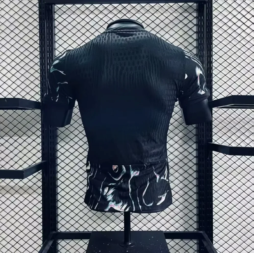 Ce maillot arbore une teinte noire intégrale, mettant en avant un style minimaliste et raffiné. Le logo de la Corée du Sud est brodé avec précision pour un rendu authentique.
