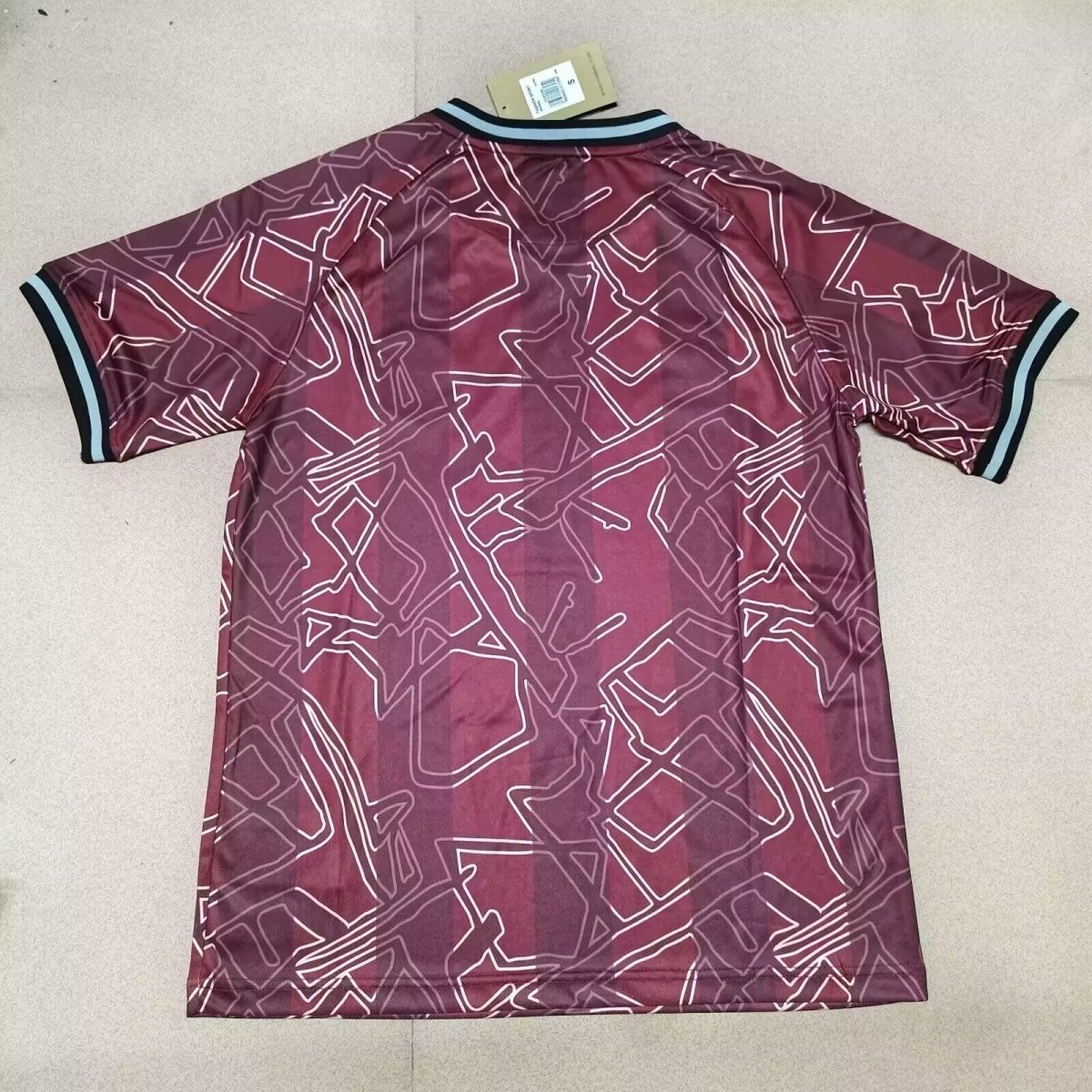 - Couleurs : Bordeaux avec motifs géométriques blancs