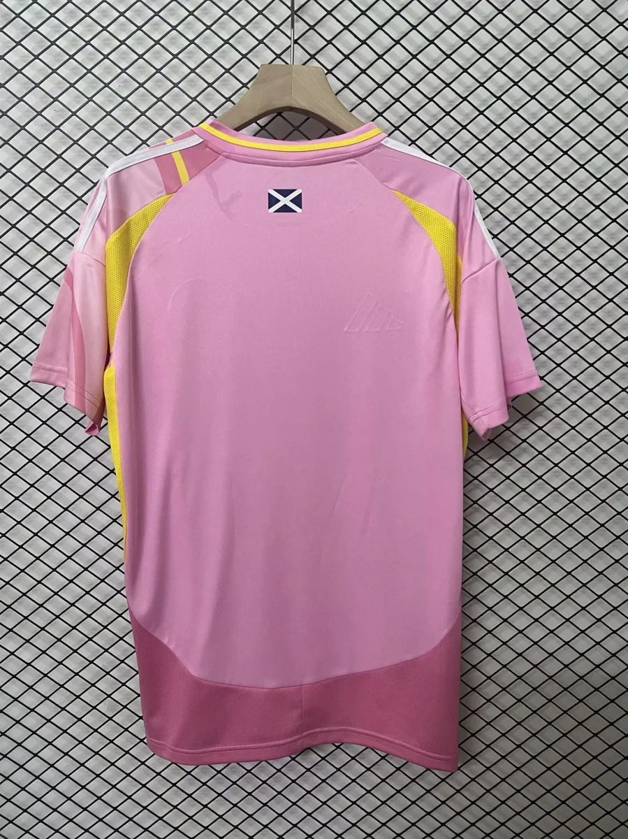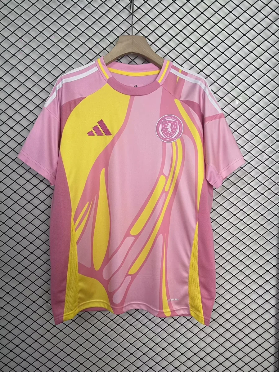 Le Maillot Écosse Féminine Extérieur 2025/2026 se démarque par un design audacieux et moderne. Avec sa teinte rose éclatante et ses détails jaunes lumineux, ce maillot incarne l’énergie et la fierté du football féminin écossais. Idéal pour les fans en quête de fraîcheur et d’originalité, il allie style, confort et performance.