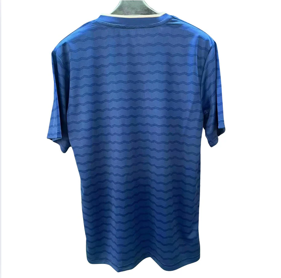 Ce maillot, avec son bleu profond et ses détails blancs, incarne l’élégance et la fiabilité du club d’Everton. Le tissu en polyester garantit une gestion efficace de l’humidité, vous permettant de rester au frais et à l’aise tout au long des matchs. Plus qu’un simple vêtement, ce maillot est un symbole de votre loyauté envers les Toffees.