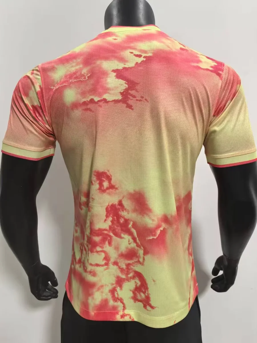 Ce maillot se distingue par sa teinte orange éclatante, rehaussée de détails uniques. Fabriqué en 100% polyester respirant, il assure une ventilation optimale et une gestion efficace de l’humidité, parfait pour les supporters actifs ou les joueurs sur le terrain.