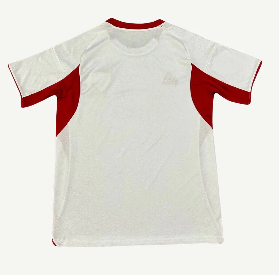 Ce maillot domicile est conçu dans un blanc pur, avec des accents rouges sur le col et les manches. Fabriqué en polyester respirant, il vous assure un confort optimal pendant les matchs ou dans vos activités quotidiennes, en évacuant efficacement l’humidité.