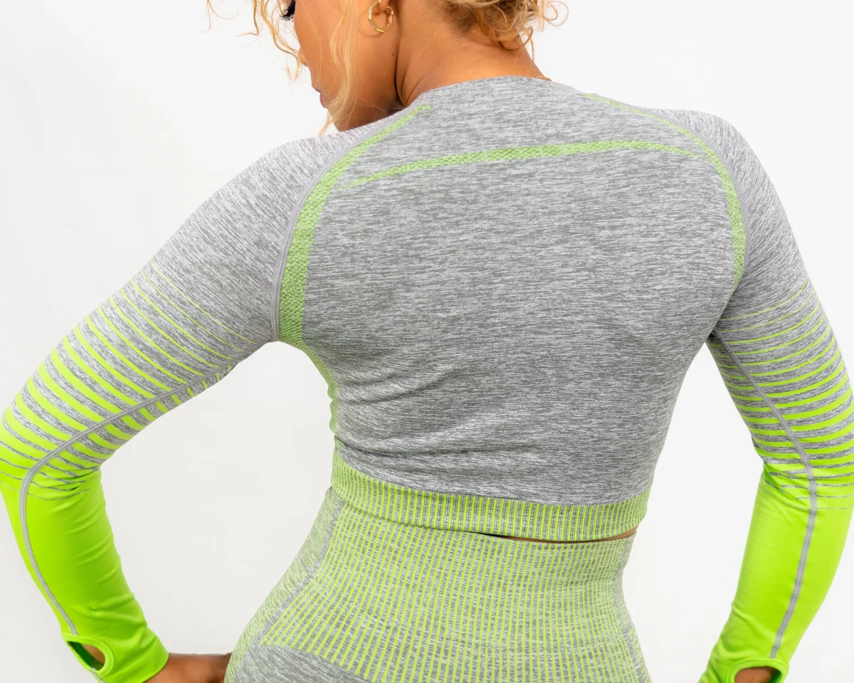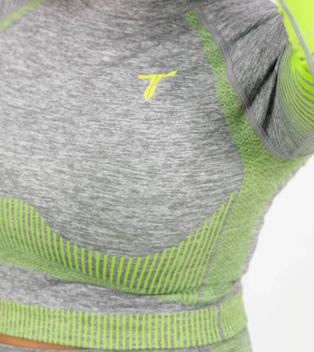 Haut court à manche longue TimsGreen TchimoTean sans couture. Grâce à sa technologie anti-transpiration, son tissus résistant aux squats et aux marques d’amélioration de la forme, ce haut TT est conçu pour vous aider à soutenir votre entrainement et vous donner un ajustement comme jamais auparavant. Tous nos Hauts tailles normalement. Notre model fait 1,66m et porte une taille S