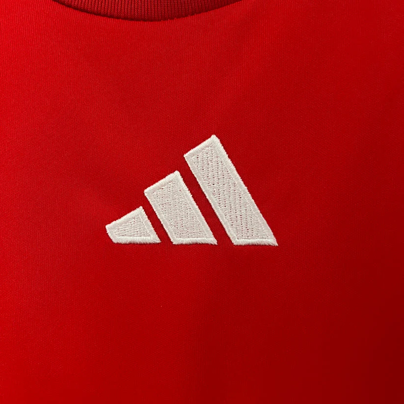 Ce maillot se distingue par sa couleur rouge vibrante, agrémentée de détails verts et blancs qui symbolisent les couleurs nationales. Fabriqué en polyester respirant, il offre une excellente ventilation et un confort optimal, que ce soit sur le terrain ou lors des activités quotidiennes.