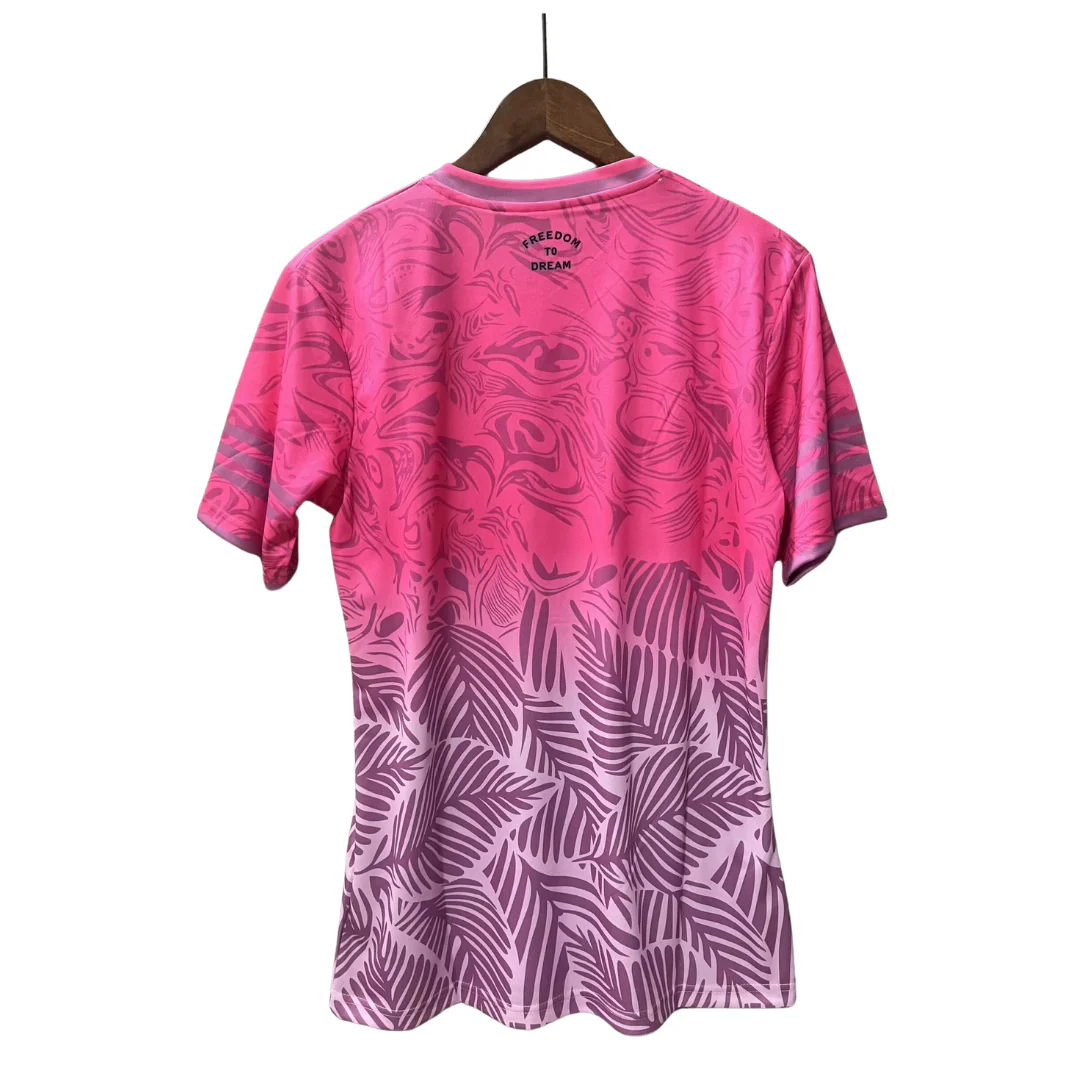 Ce maillot arbore un fond noir audacieux, rehaussé de détails rouges et roses qui symbolisent la chaleur et l’esprit unique du club. Fabriqué en 100% polyester respirant, il assure une excellente ventilation et une gestion optimale de l’humidité, vous gardant à l’aise lors des matchs ou dans vos activités quotidiennes.
