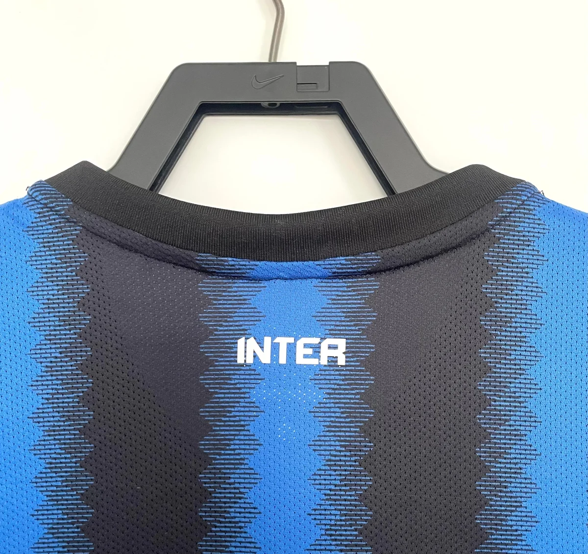 Le logo du club est brodé avec soin sur la poitrine, rappelant la fierté et l’héritage de l’Inter Milan. Le sponsor historique de cette époque est également imprimé, renforçant l’authenticité et la nostalgie de ce maillot rétro.