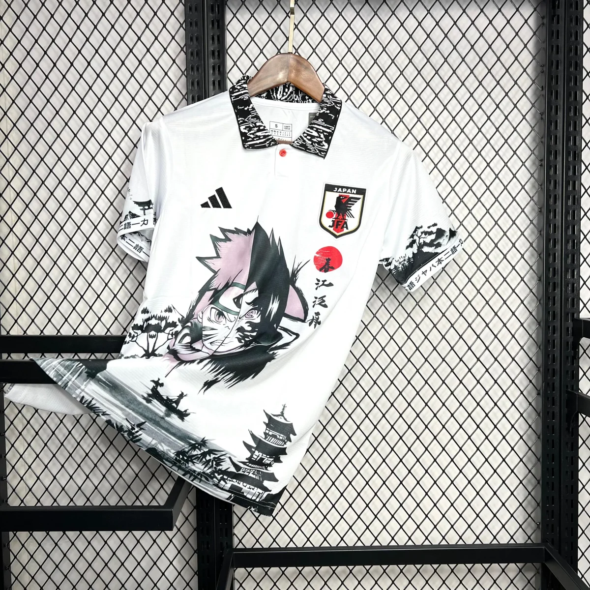 Le Maillot Japon Naruto vs Sasuke Edition 2024 s’inspire de l’emblématique rivalité entre Naruto Uzumaki et Sasuke Uchiha. Arborant un design blanc pur, rehaussé de détails noirs et roses, ce maillot symbolise le conflit et l’amitié entre ces deux personnages légendaires tout en célébrant la passion pour le football japonais. Conçu pour offrir un confort optimal, il est fabriqué en polyester léger et respirant.
