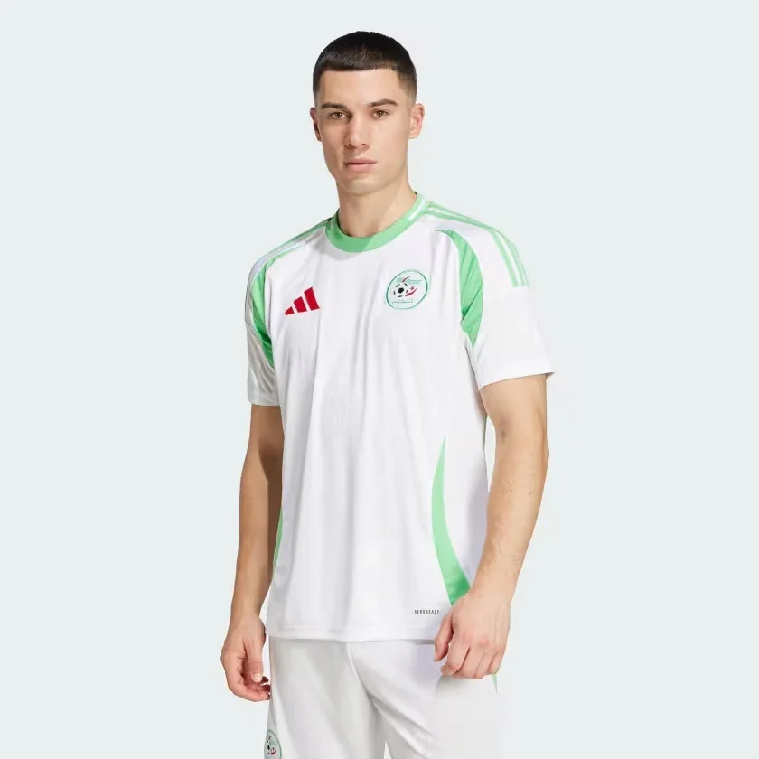 MAILLOT ALGÉRIE DOMICILE 2024/2025 Supportez votre équipe fièrement avec ce maillot qui symbolise votre passion et votre engagement. Que chaque match soit une occasion de célébrer votre fidélité et de montrer votre esprit d’équipe !