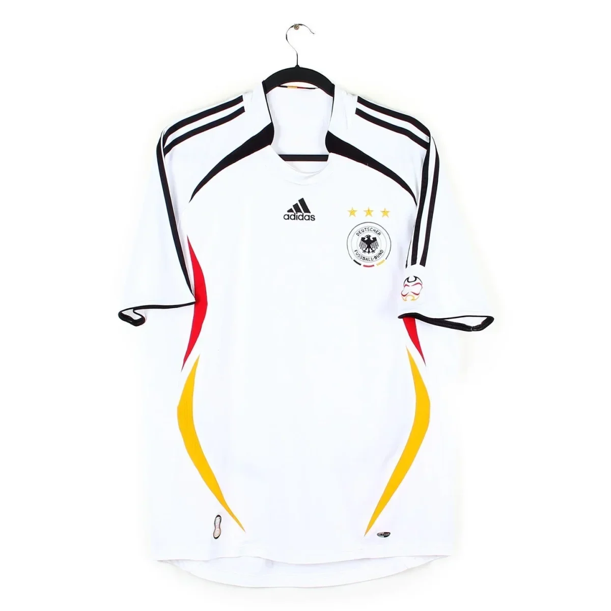 MAILLOT ALLEMAGNE RETRO 2006 Maillot porté par la sélection de Jürgen Klinsmann lors de la Coupe du Monde 2006 organisée sur leurs terres. Les allemands seront privés de finale par l’Italie, au terme d’une prolongation animée (0-2) !