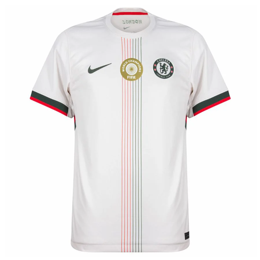 MAILLOT CHELSEA EXTERIEUR HOMME BLANC 2025/2026 Affichez fièrement votre soutien à votre équipe de football préférée pour la saison 2025-2026. Personnalisez votre maillot avec le nom et le numéro de vos joueurs favoris !