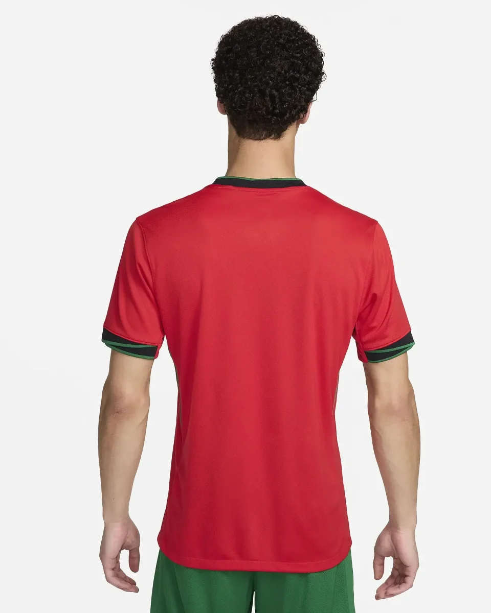 MAILLOT DE FOOTBALL PORTUGAL 2024 La tenue du Portugal Domicile 2024 Inspirée du drapeau national, combine le rouge passion avec des accents verts. L’écusson national est au cœur du maillot, symbolisant fièrement l’identité et l’héritage du football portugais.