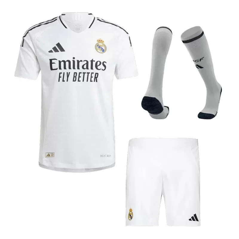 MAILLOT KIT ENFANT REAL MADRID BELLINGHAM DOMICILE 2024/2025 Supportez votre équipe fièrement avec ce kit qui symbolise votre passion et votre engagement. Que chaque match soit une occasion de célébrer votre fidélité et de montrer votre esprit d’équipe ! Maillot + Short + Chaussettes