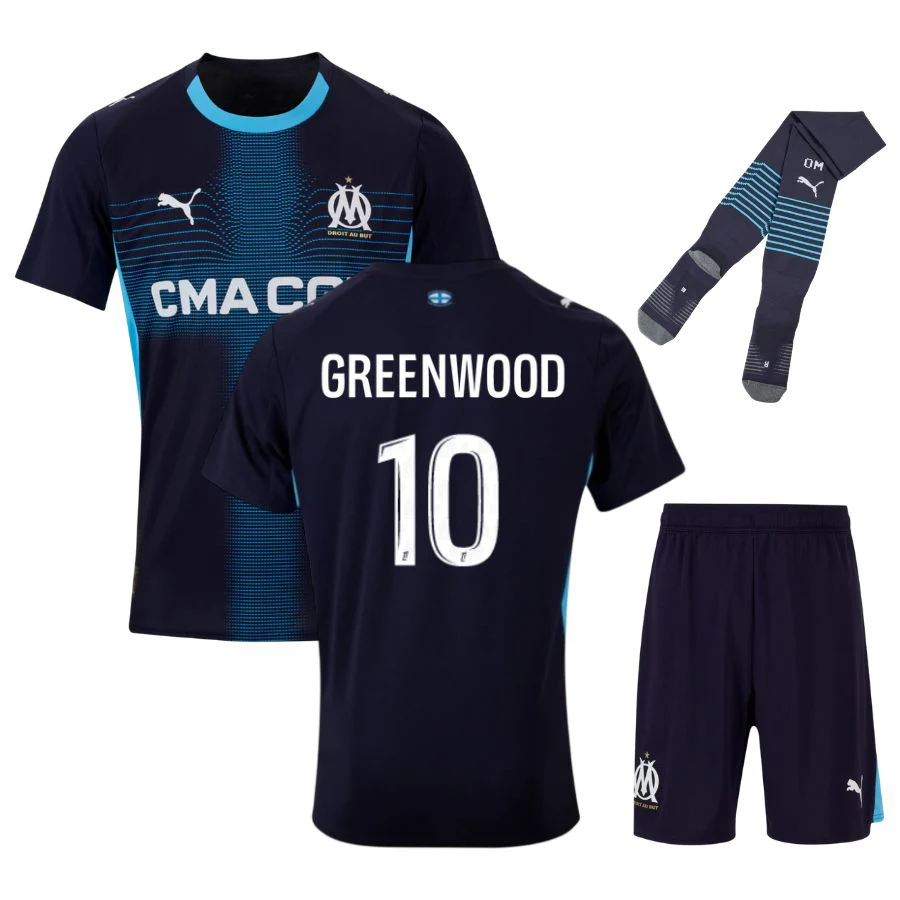 MAILLOT OM KIT ENFANT OLYMPIQUE DE MARSEILLE EXTERIEUR 2025/2026Olympique de Marseille Supporte l’OM fièrement avec ce maillot enfant de l’olympique de Marseille. Montre ta passion et ton esprit d’équipe à chaque match Maillot + Short + Chaussettes Personnalisez votre maillot avec le nom et le numéro de vos joueurs favoris !