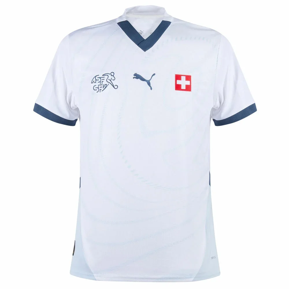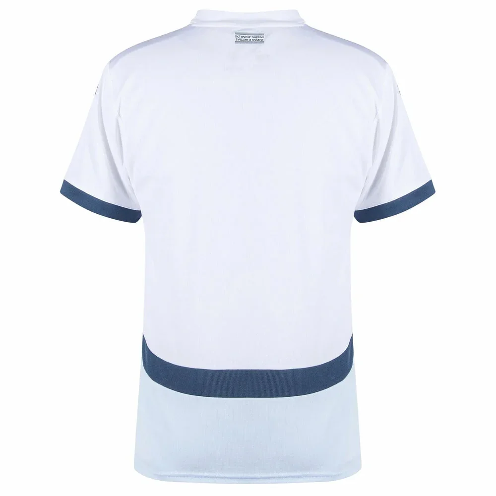MAILLOT SUISSE EXTERIEUR BLANC 2024/2025 Supportez votre équipe fièrement avec ce maillot qui symbolise votre passion et votre engagement. Que chaque match soit une occasion de célébrer votre fidélité et de montrer votre esprit d’équipe !