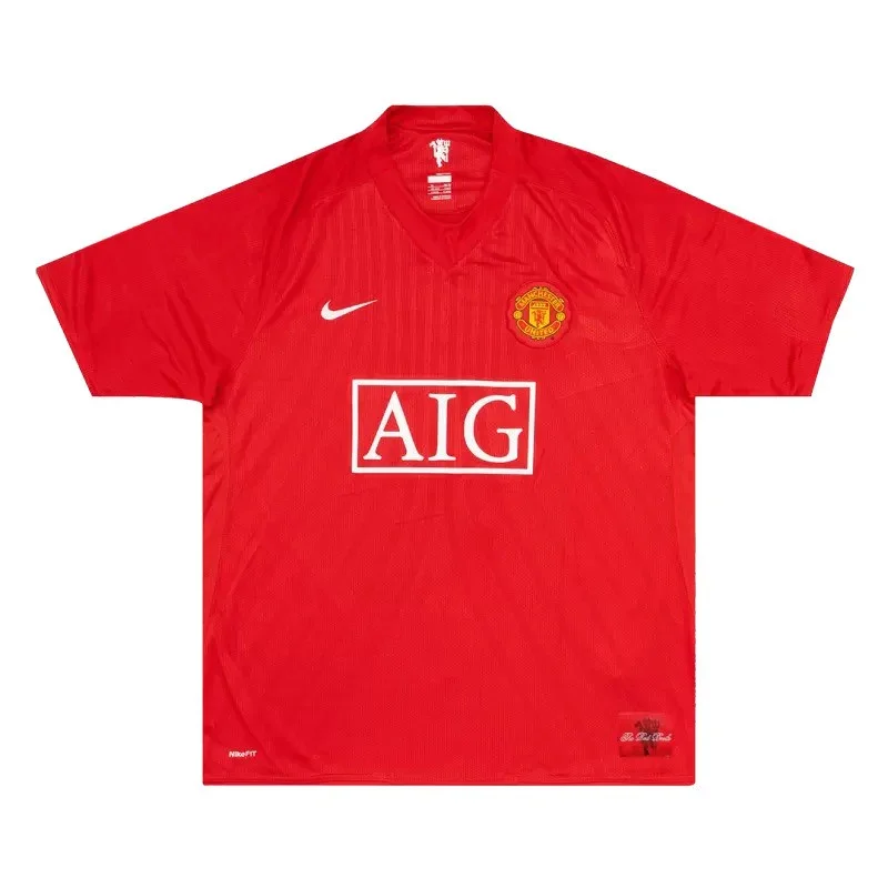 Maillot domicile porté par les Red Devils lorsque leur superstar portugaise Cristiano Ronaldo a connu une saison exceptionnelle en marquant 42 buts incroyables, aidant United à réaliser un doublé Premier League et Ligue des champions, ses performances étant récompensées par le Ballon d’Or 2008 et le prix du Joueur mondial de l’année de la FIFA