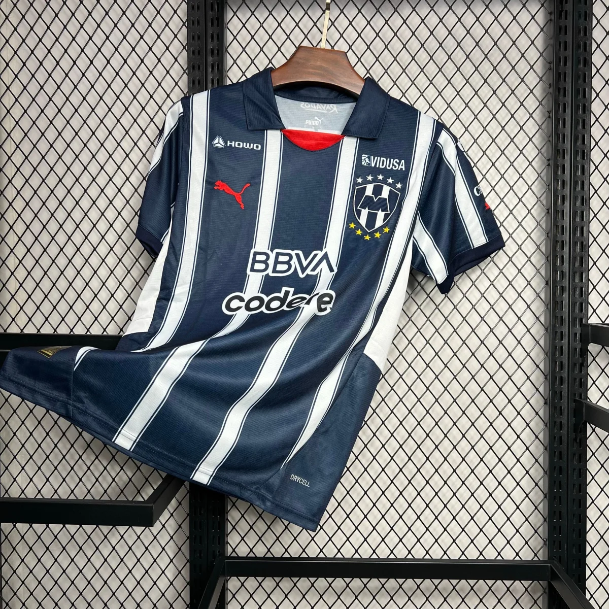 Ce maillot arbore les rayures classiques bleu marine et blanches, signature emblématique de Monterrey. La combinaison intemporelle des couleurs renforce l’identité visuelle du club tout en offrant un design moderne et percutant.
