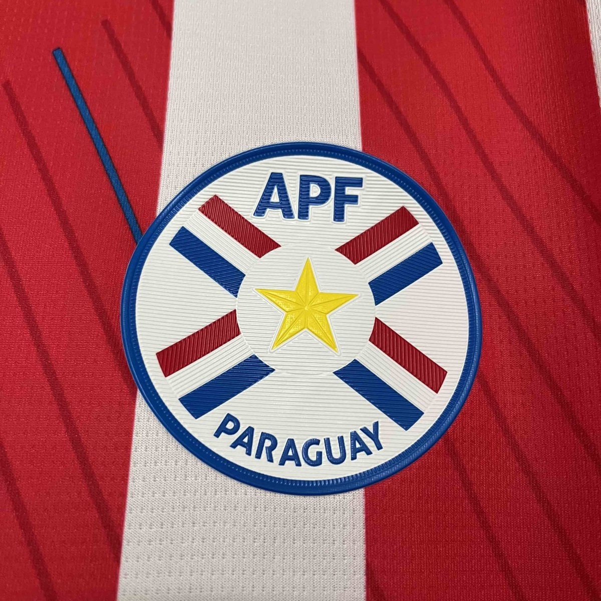 Le logo de la Fédération paraguayenne est brodé sur la poitrine, tandis que les sponsors sont imprimés subtilement, préservant une esthétique propre et harmonieuse. La coupe ajustée assure un look moderne tout en garantissant une grande liberté de mouvement.
