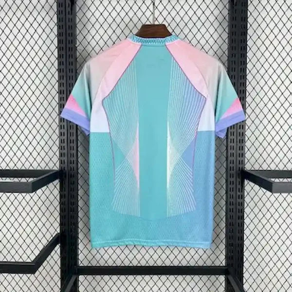 Le maillot bleu et rose du Paris Saint-Germain pour la saison 2025/2026 incarne l’esprit avant-gardiste du club.