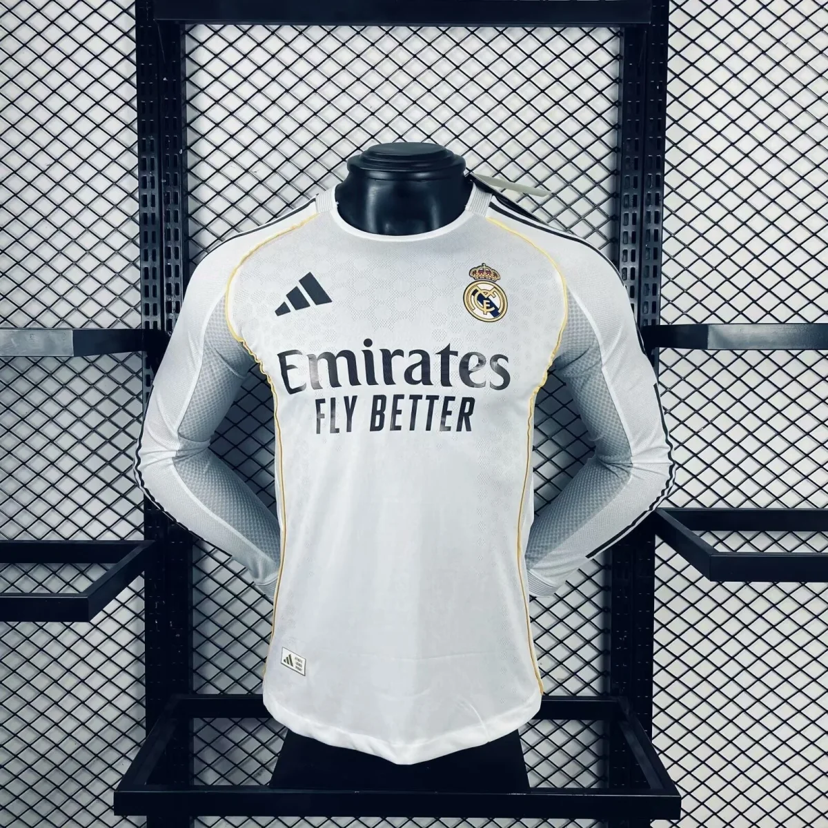 Maillot Real Madrid Domicile Version Joueur Manches Longues 2025/2026 – L’Élégance Blanche, l’Exigence Pro