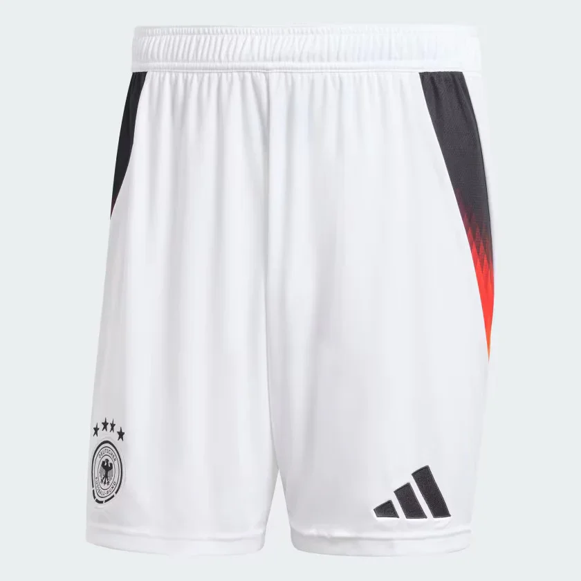 SHORT ALLEMAGNE DOMICILE BLANC 2024/2025 Supportez votre équipe fièrement avec ce short qui symbolise votre passion et votre engagement. Que chaque match soit une occasion de célébrer votre fidélité et de montrer votre esprit d’équipe !