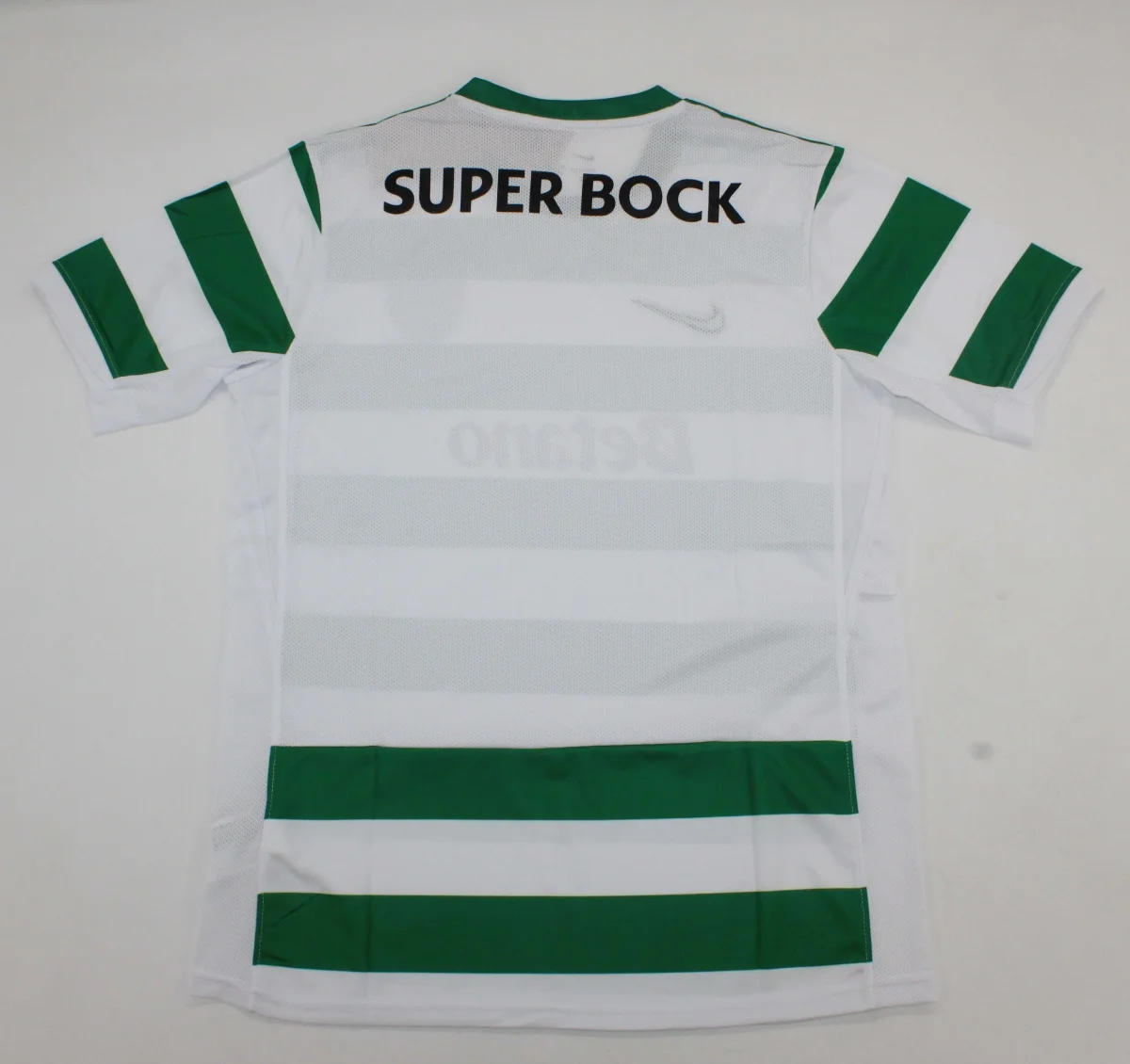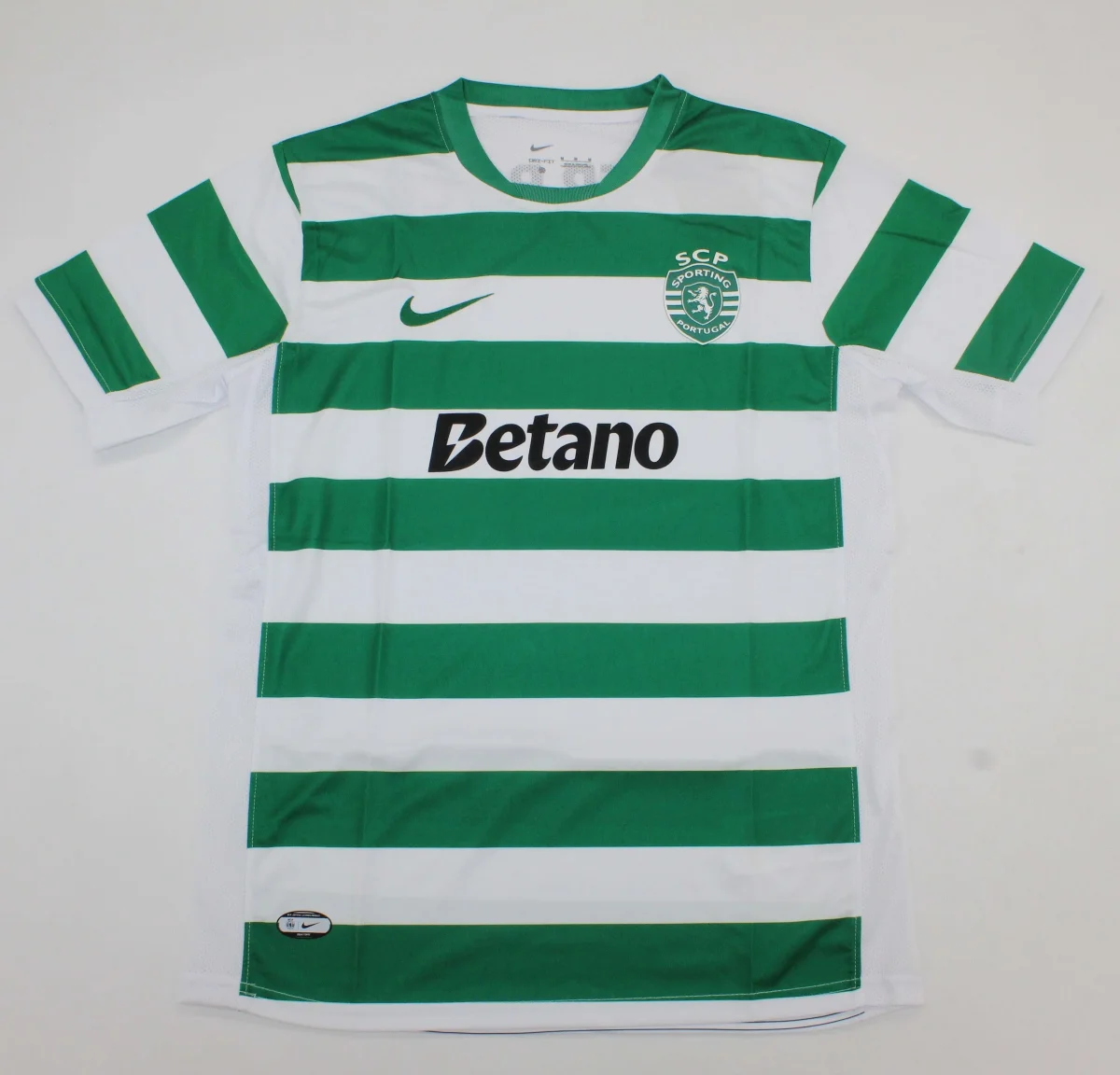 Ce maillot arbore les iconiques rayures vertes et blanches horizontales, emblèmes du Sporting CP.