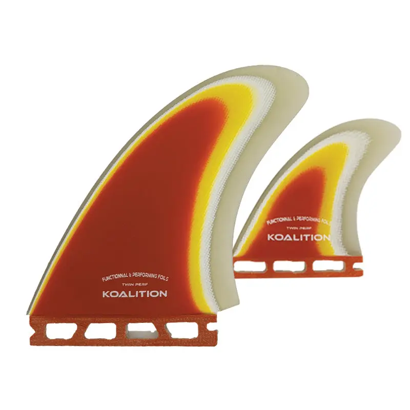 Les ailerons Twin Perf de chez Koalition sont conçus pour offrir une performance optimale aux amateurs de twin fins, en alliant style et maniabilité.